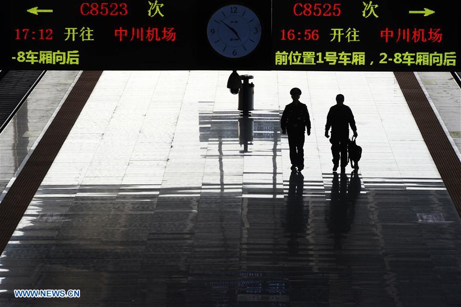 La perra policía Lulu verifica sustancias prohibidas en los equipajes de los pasajeros en el puesto de control de seguridad de la estación de tren Lanzhouxi en Lanzhou, capital de la provincia de Gansu, el 22 de enero del 2017. Muchos perros policía estarán de servicio durante la oleada de viajes interprovinciales e internacionales motivados por las vacaciones de invierno del A?o Nuevo Chino. (Foto: Chen Bin)