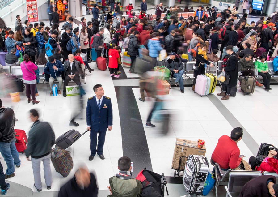 Li Wei en la estación de tren de Chongqing, el 18 de enero 2017. [Foto / Xinhua]