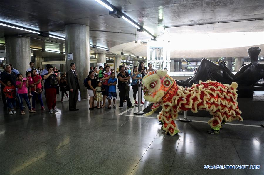 Una danza del dragón y del león es interpretada para anunciar las celebraciones del A?o Nuevo Lunar chino, en el interior de la Estación Sé del Metro de Sao Paulo, en Sao Paulo, Brasil, el 24 de enero de 2017. El Festival de Primavera o A?o Nuevo Lunar chino, se celebra el 28 de enero este a?o. (Xinhua/Rahel Patrasso)