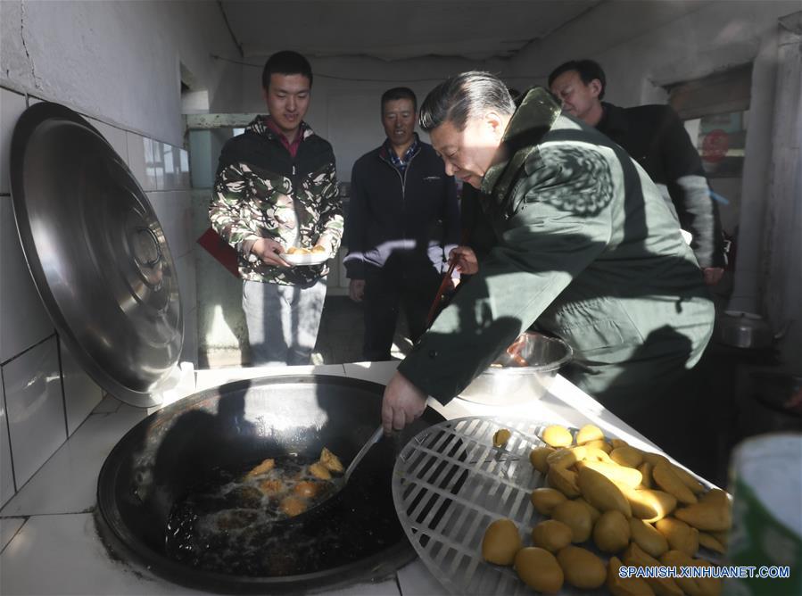 El presidente de China, Xi Jinping hizo una gira de inspección a la ciudad de Zhangjiakou, en la provincia septentrional china de Hebei, donde inspeccionó una aldea pobre, visitó y charló con familias pobres y discutió cómo podrían librarse de la pobreza.(Xinhua/Lan Hongguang)