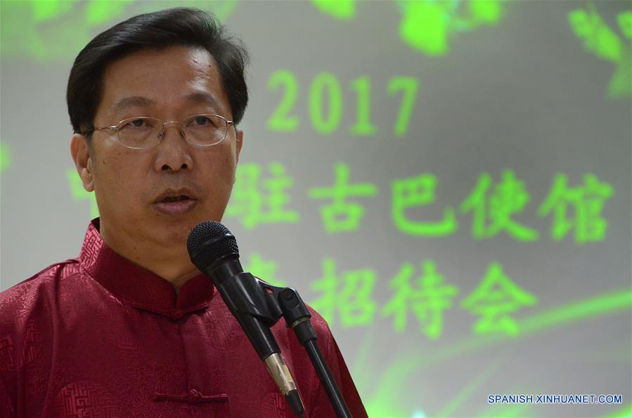 LA HABANA, enero 24, 2017 (Xinhua) -- El embajador de China en Cuba, Chen Xi, pronuncia un discurso durante una recepción con motivo del A?o Nuevo Lunar chino en la embajada de China en La Habana, Cuba, el 24 de enero de 2017. La Embajada china en Cuba ofreció la noche del martes una recepción con motivo del A?o Nuevo según el calendario lunar chino, conocido como Festival de Primavera, que es la celebración tradicional más importante para los chinos y que se celebra este a?o el 28 de enero. (Xinhua/Joaquín Hernández)
