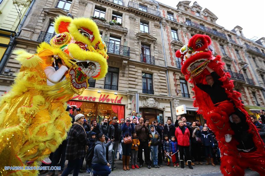 BRUSELAS, enero 28, 2017 (Xinhua) -- Bailarines de la danza del león participan durante el Desfile del A?o Nuevo Lunar chino en el centro de Bruselas, Bélgica, el 28 de enero de 2017. (Xinhua/Gong Bing)