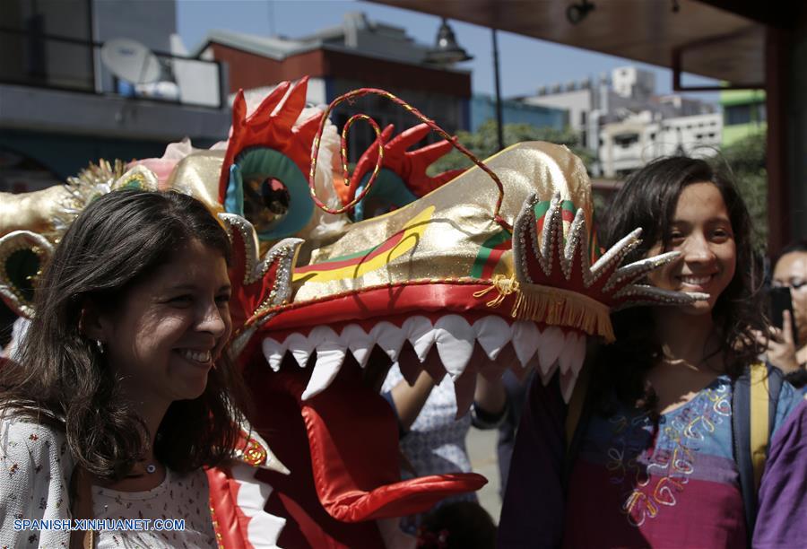 SAN JOSE, enero 28, 2017 (Xinhua) -- Personas posan con un dragón en el marco de las celebraciones del A?o Nuevo Lunar chino, en el Barrio Chino de San José, capital de Costa Rica, el 28 de enero de 2017. El Festival de Primavera o A?o Nuevo Lunar chino, se celebra el 28 de enero este a?o. (Xinhua/Kent Gilbert)