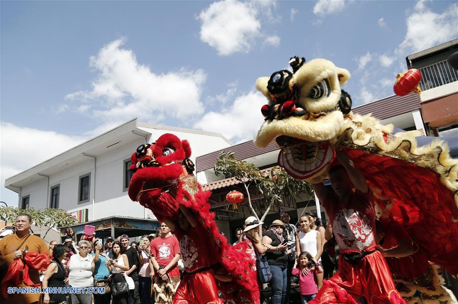 SAN JOSE, enero 28, 2017 (Xinhua) -- Personas realizan la danza del león durante las celebraciones del A?o Nuevo Lunar chino, en el Barrio Chino de San José, capital de Costa Rica, el 28 de enero de 2017. El Festival de Primavera o A?o Nuevo Lunar chino, se celebra el 28 de enero este a?o. (Xinhua/Kent Gilbert)