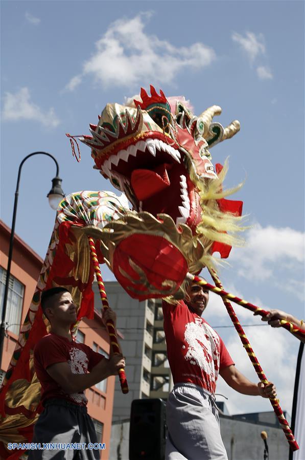 SAN JOSE, enero 28, 2017 (Xinhua) -- Personas realizan la danza del dragón durante las celebraciones del A?o Nuevo Lunar chino, en el Barrio Chino de San José, capital de Costa Rica, el 28 de enero de 2017. El Festival de Primavera o A?o Nuevo Lunar chino, se celebra el 28 de enero este a?o. (Xinhua/Kent Gilbert)