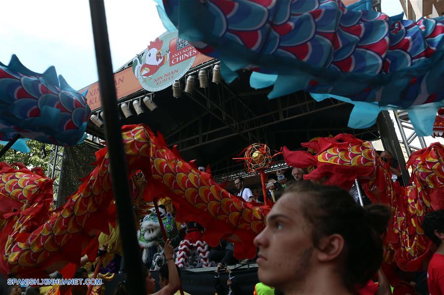 SAO PAULO, enero 28, 2017 (Xinhua) -- Una danza del dragón y del león es interpretada durante las celebraciones del A?o Nuevo Lunar chino, en Sao Paulo, Brasil, el 28 de enero de 2017. El Festival de Primavera o A?o Nuevo Lunar chino, se celebra el 28 de enero este a?o. (Xinhua/Rahel Patrasso)