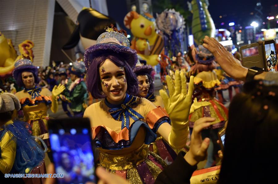 HONG KONG, enero 28, 2017 (Xinhua) -- Artistas interactúan con el público durante el Desfile Internacional de la Noche del A?o Nuevo Chino de Cathay Pacific, en Hong Kong, en el sur de China, el 28 de enero de 2017. (Xinhua/Wang Shen)