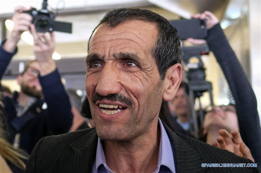 El ciudadano iraní con visa estadounidense Ali Vayeghan (d), quien fue expulsado tras llegar el 27 de enero a Estados Unidos de América, luego de que el presidente estadounidense, Donald Trump, firmó una orden ejecutiva para restringir la entrada a su país a refugiados y ciudadanos de siete países de mayoría musulmana, llega al Aeropuerto Internacional de Los Angeles, en California, Estados Unidos de América, el 2 de febrero de 2017. De acuerdo con información de la prensa local, Ali Vayeghan es la primera persona expulsada de Estados Unidos de América luego de la firma de la orden ejecutiva de Trump a la que se le permite regresar al país por una orden judicial. (Xinhua/Ringo Chiu/ZUMAPRESS)
