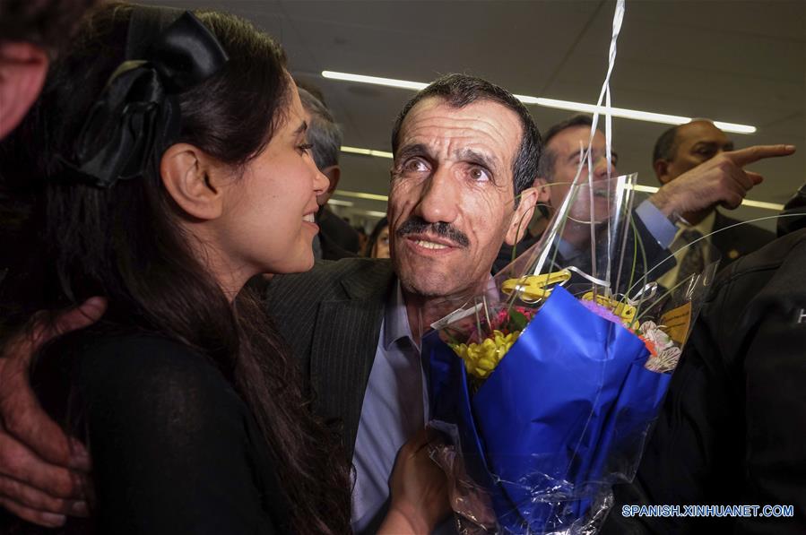 El ciudadano iraní con visa estadounidense Ali Vayeghan (d), quien fue expulsado tras llegar el 27 de enero a Estados Unidos de América, luego de que el presidente estadounidense, Donald Trump, firmó una orden ejecutiva para restringir la entrada a su país a refugiados y ciudadanos de siete países de mayoría musulmana, es recibido por su sobrina Marjan Vayghan (i), en el Aeropuerto Internacional de Los Angeles, en California, Estados Unidos de América, el 2 de febrero de 2017. De acuerdo con información de la prensa local, Ali Vayeghan es la primera persona expulsada de Estados Unidos de América luego de la firma de la orden ejecutiva de Trump a la que se le permite regresar al país por una orden judicial. (Xinhua/Ringo Chiu/ZUMAPRESS)