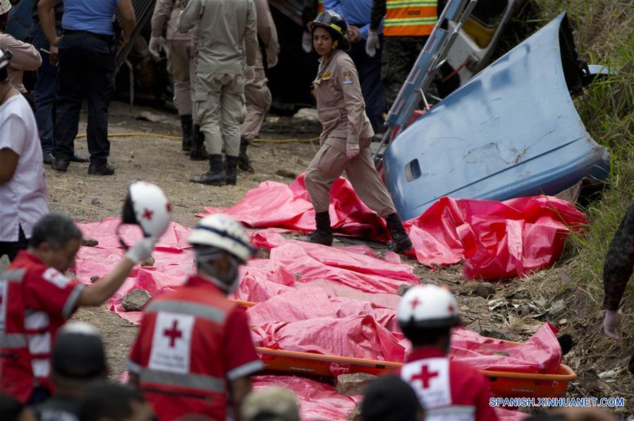 TEGUCIGALPA, febrero 5, 2017 (Xinhua) -- Rescatistas participan en la búsqueda de víctimas en el sitio donde un autobús interurbano colisionó con un camión de carga en Tegucigalpa, Honduras, el 5 de febrero de 2017. De acuerdo con información de la prensa local, al menos 17 personas murieron y varias decenas resultaron heridas a consecuencia del choque entre un autobús interurbano y un camión en una carretera del sur de Honduras. (Xinhua/Rafael Ochoa)
