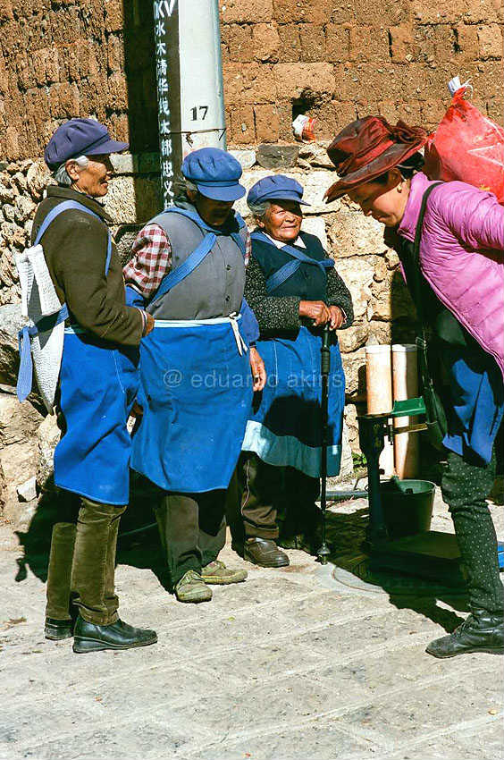 Durante el camino es posible tomar contacto directo con miembros de la etnia minoritaria Naxi. La suya es una sociedad matriarcal, en la que las mujeres toman el liderazgo en la mayoría de los asuntos del día a día, y donde la herencia se transmite por línea femenina. Algunos pastores Naxi pasean a sus reba?os de cabras por esta ruta, cargando a sus espaldas una característica cesta de paja. Este itinerario ofrece así no sólo panorámicas increíbles, sino también experiencias culturales que nos acercan un poco más a los modos de vida en la zona.
