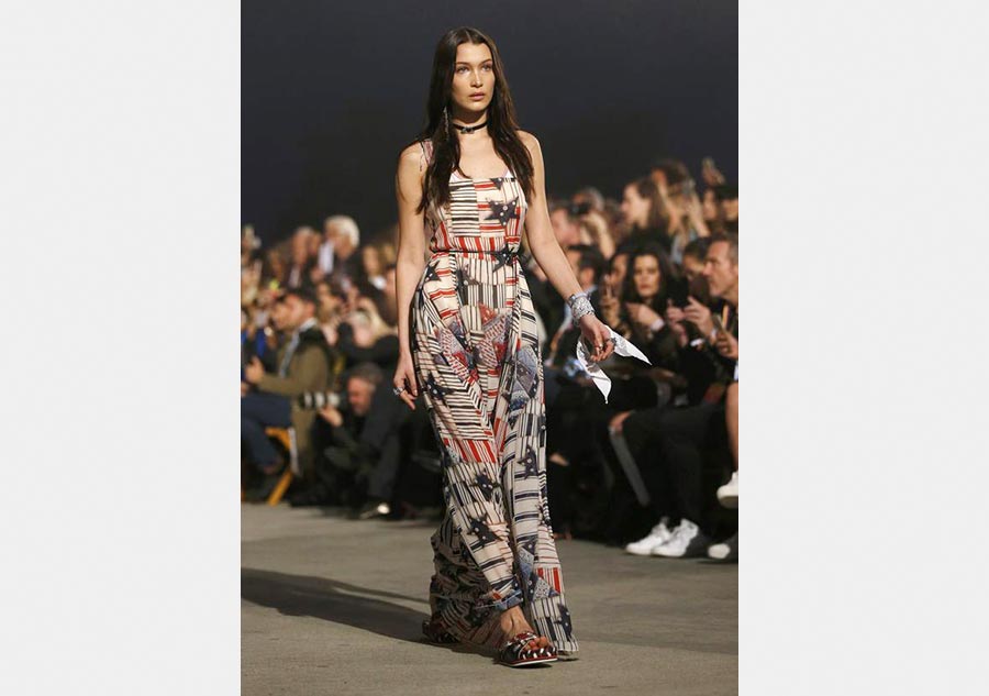La modelo Bella Hadid camina por la pasarela durante el desfile Tommy Hilfiger Runway Show 2017 en Venecia, California, EE.UU, el 8 de febrero de 2017. [Foto / agencias]