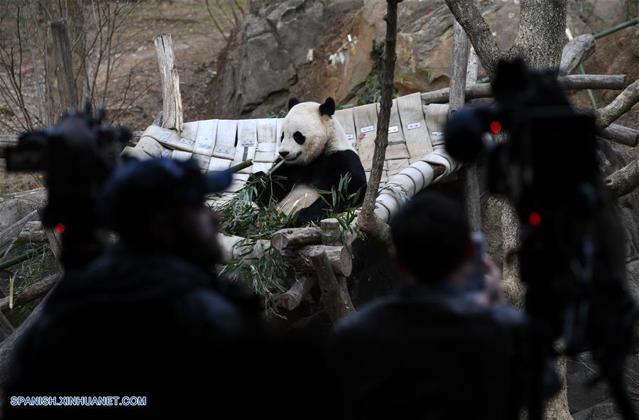 WASHINGTON D.C., febrero 21, 2017 (Xinhua) -- Representantes de los medios de comunicación toman video y fotografías del panda gigante Bao Bao jugando antes de partir del Zoológico Nacional Smithsoniano hacia China, en Washington D.C., Estados Unidos de América, el 21 de febrero de 2017. El panda gigante Bao Bao, nacido en Estados Unidos de América, llegará a la provincia de Sichuan, en el suroeste de China, el miércoles por la noche, hora de Beijing. (Xinhua/Yin Bogu)