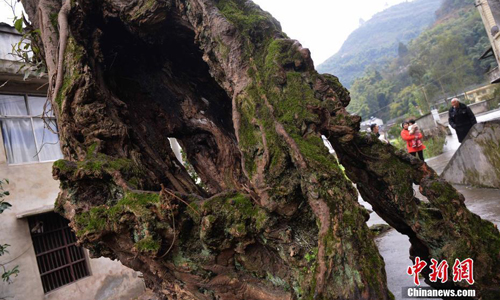 Un árbol de la especie Ficus Virens ha sobrevivido durante 100 a?os en la aldea Xinwu, en Nanchuan, Chongqing. Bajo la protección de los residentes, el imponente gigante es el referente indiscutible de la zona. Incluso, con frecuencia los ni?os juegan en el hueco de su robusto tronco.