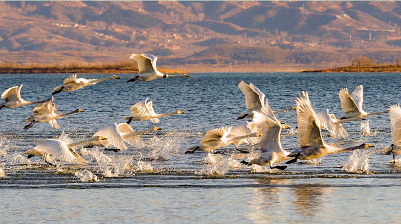 En los últimos a?os, Beijing ha continuado aumentando los esfuerzos de protección del medio ambiente y ha delimitado la zona del embalse de Miyun para proteger el medio acuático, lo que garantiza la calidad del agua en la capital. La imagen muestra a un grupo de cisnes en el embalse de Miyun. (Foto: He Yong, Diario del Pueblo)