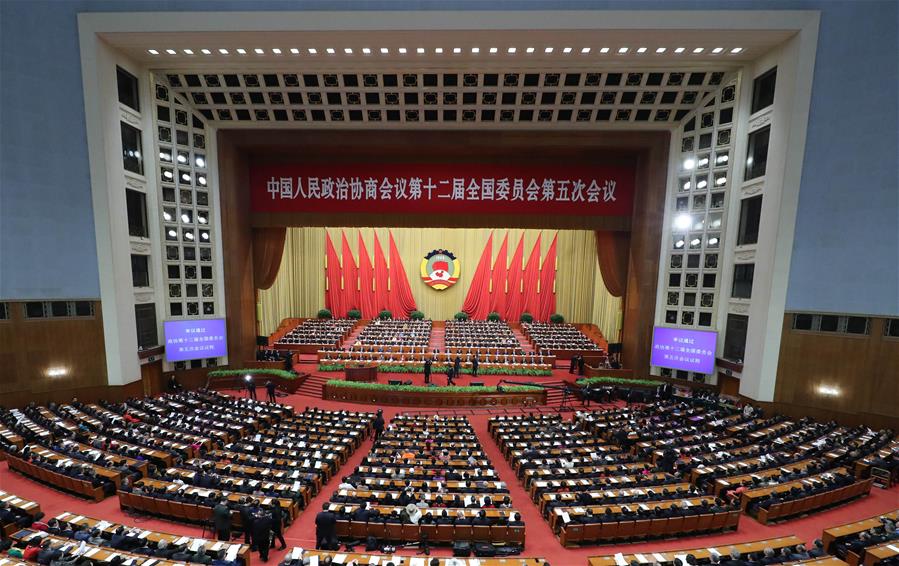 El máximo órgano de asesoría política de China, la Conferencia Consultiva Política del Pueblo Chino, inició su sesión anual hoy viernes en Beijing. (Xinhua/Liu Weibing)