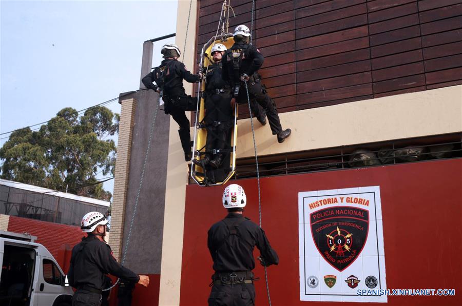 Policías que integran el Escuadrón de Emergencia de la Policía Nacional de Perú (PNP) participan en una demostración durante la celebración del Día Internacional de la Mujer, en Lima, Perú, el 7 de marzo de 2017. El tema central del Día Internacional de la Mujer de 2017 de la Organización de las Naciones Unidas (ONU), que se celebrará el 8 de marzo, será "Las mujeres en un mundo laboral en transformación: hacia un planeta 50-50 en 2030". (Xinhua/Norman Córdova/ANDINA)