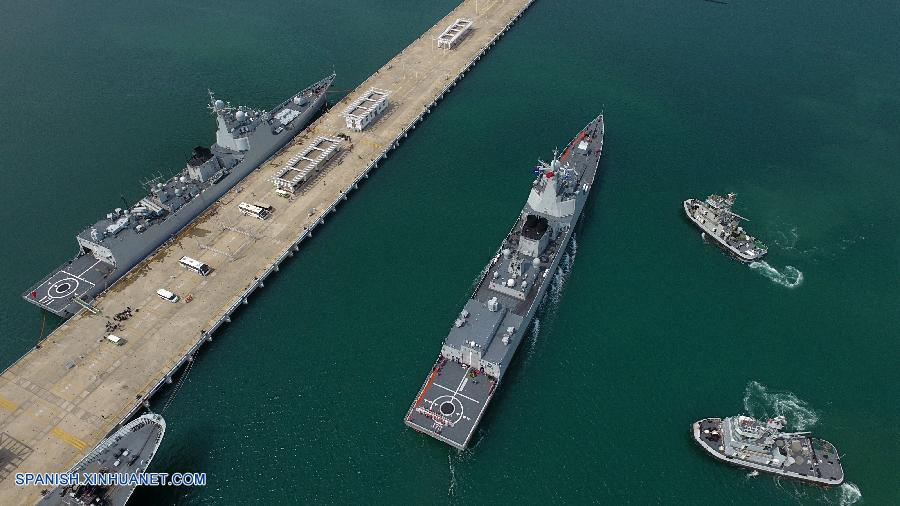 HAINAN, marzo 7, 2017 (Xinhua) -- El destructor de misiles Changsha (d) regresa a un puerto luego de un ejercicio en alta mar, en la ciudad de Sanya, provincia de Hainan, en el sur de China, el 7 de marzo de 2017. Una flota naval de China regresó el martes a un puerto de Sanya, en la provincia insular de Hainan, después de un ejercicio en alta mar. La flota, compuesta por los destructores Changsha y Haikou y el buque de aprovisionamiento Luomahu, navegó más de 8,000 millas náuticas desde el 10 de febrero, pasando por el Mar Meridional de China, el este del Océano Indico, el oeste del Océano Pacífico y el Mar Oriental de China. (Xinhua/Zeng Tao)