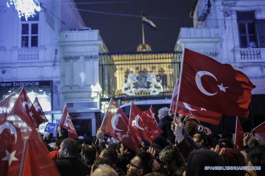 ANKARA, 12 mar (Xinhua) -- Holanda prohibió a unos ministros turcos realizar una concentración política en Rotterdam como parte de una campa?a relacionada con un referendo que se realizará en abril, lo que tensó las relaciones diplomáticas bilaterales.