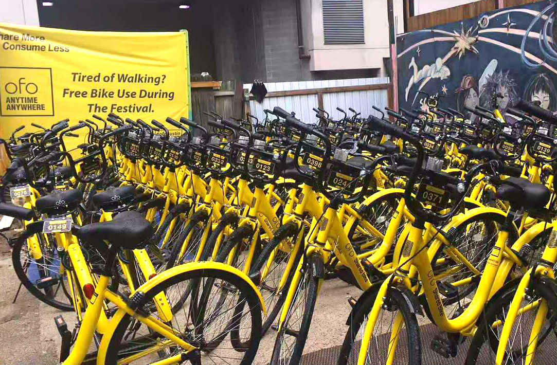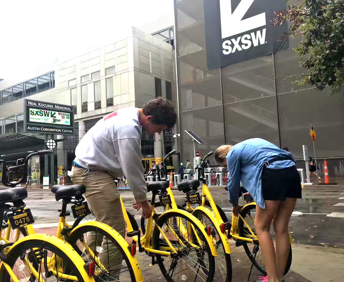Peque?as, rápidas y elegantes, cientos de bicicletas amarillas de Ofo, una de las empresas más grandes de China, han sido repartidas por los principales lugares del SXSW, incluyendo el Austin Convention Center, el JW Marriott Hotel y varios lugares en el centro de la ciudad. Las bicicletas serán completamente gratuitas durante el evento, del 10 al 19 de marzo.