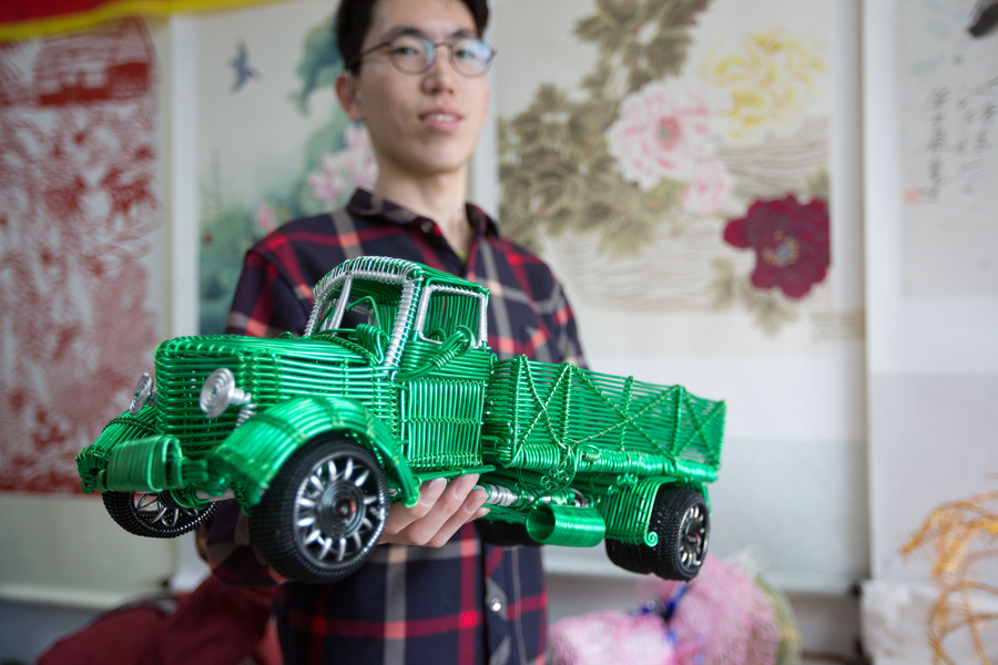 Li Yanfeng en su estudio de Changchun, provincia de Jilin. 9 de marzo del 2017, 9 de marzo de 2017. [Foto: VCG]