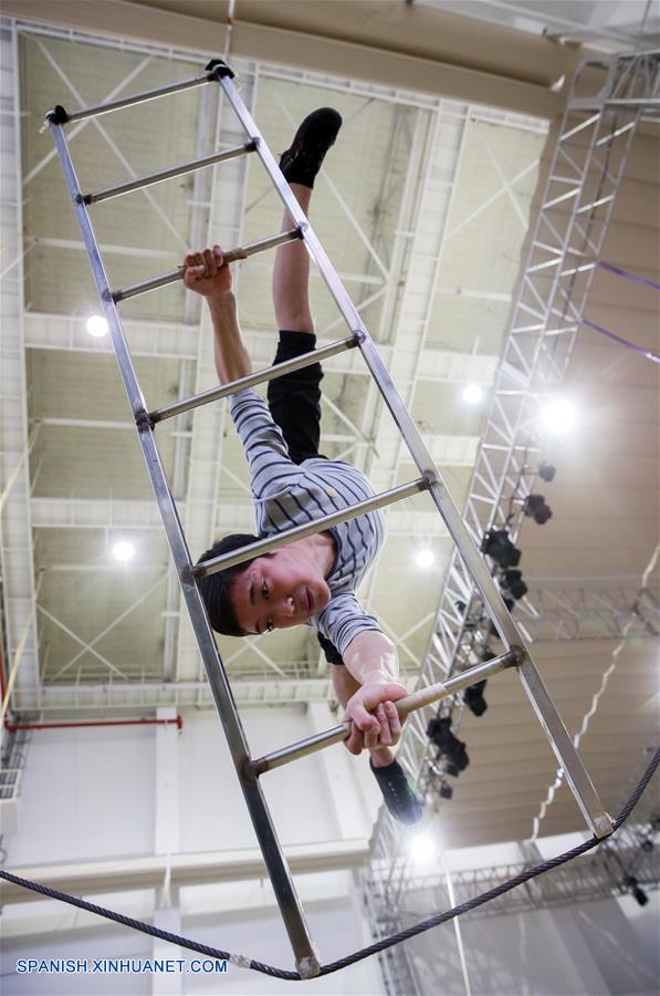 SHANGHAI, marzo 15, 2017 (Xinhua) -- Imagen del 13 de marzo de 2017 de un estudiante de Xinjiang ejercitándose en la Escuela Circense de Shanghai, en Shanghai, en el este de China. La Escuela Circense de Shanghai, construida en 1989, es una de las escuelas más antiguas de entrenamiento de acrobacia en China y cuenta con 45 estudiantes de Xinjiang, que se graduarán en julio y se presentarán en sus ciudades natales. (Xinhua/Ding Ting)