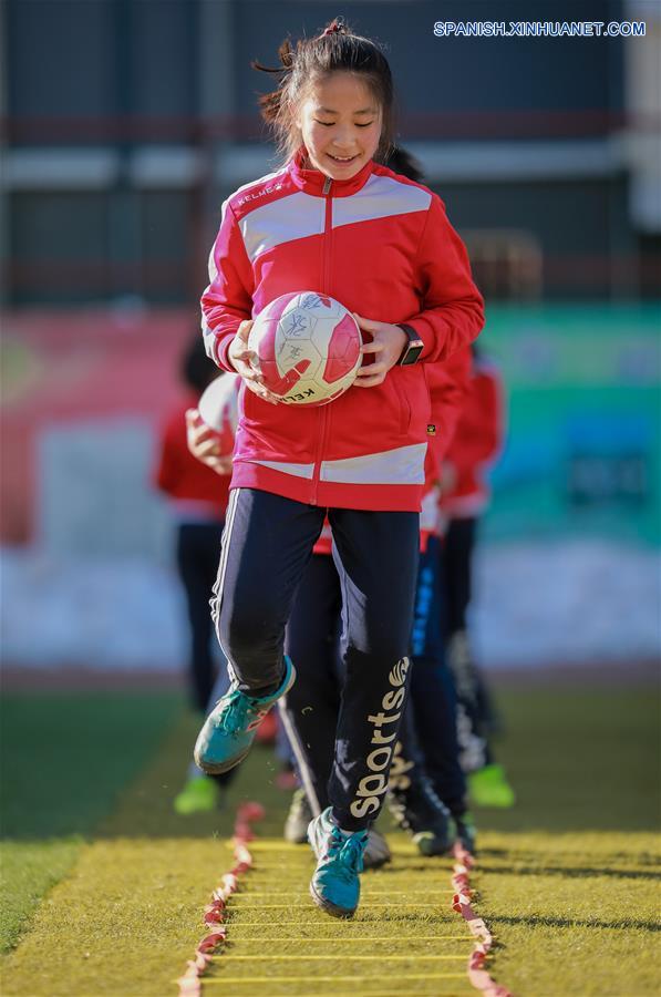 HOHHOT, marzo 15, 2017 (Xinhua) -- Ni?as de un equipo de fútbol de una escuela primaria participan en un entrenamiento, en el distrito de Yuquan de Hohhot, capital de la Región Autónoma de Mongolia Interior, en el norte de China, el 15 de marzo de 2017. (Xinhua/Ding Genhou)