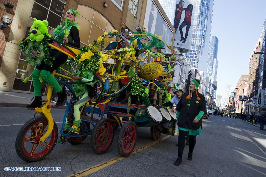 TORONTO, marzo 19, 2017 (Xinhua) -- Un carro alegórico participa durante el Desfile del Día de San Patricio 2017 en Toronto, Canadá, el 19 de marzo de 2017. El evento anual tradicional comenzó el domingo y se espera que reúna a miles de personas para festejar la historia, cultura y herencia de Irlanda a través del entretenimiento. (Xinhua/Zou Zheng)