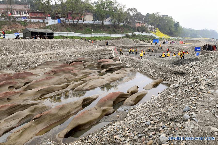 Imagen del 19 de marzo de 2017, del sitio de una excavación arqueológica en el distrito de Pengshan de la ciudad de Meishan, en la provincia de Sichuan, en el suroeste de China.