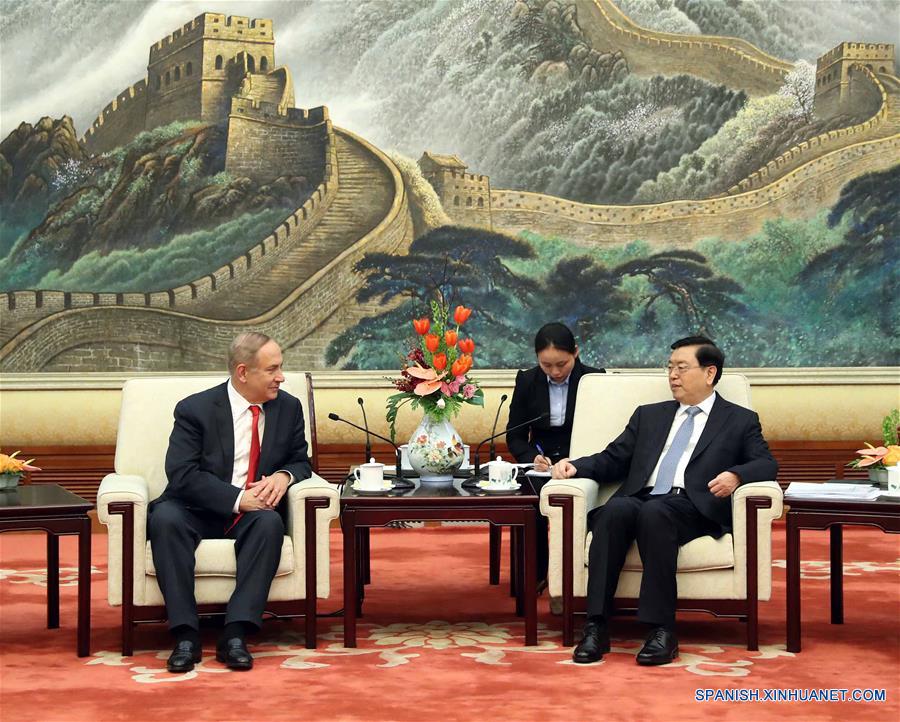 El máximo legislador de China, Zhang Dejiang, también se reunió hoy con Netanyahu. Zhang dijo que la Asamblea Popular Nacional valora sus lazos de amistad con el Parlamento israelí.