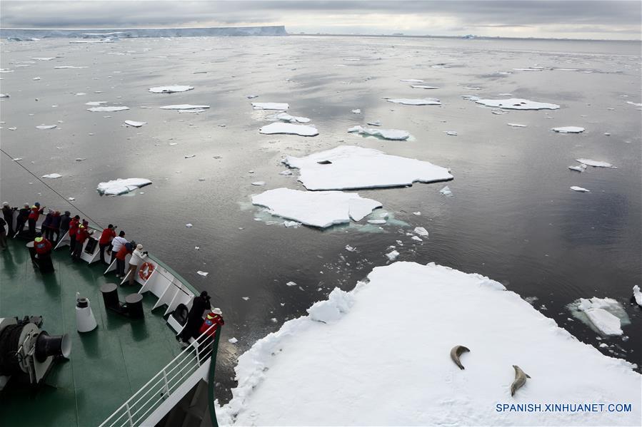 CRYSTAL SOUND, marzo 22, 2017 (Xinhua) -- Imagen del 19 de enero de 2017, de turistas observando focas cangrejeras desde la cubierta de la embarcación rusa de investigción Akademik Ioffe en Crystal Sound, Antártida. De acuerdo con información de la prensa local, en los últimos 50 a?os, la costa oeste de la península antátrica ha sido una de las zonas que ha presentado mayor calentamiento en el planeta, teniendo a sus glaciares en retiro acelerado en los últimos 12 a?os, además de que la temperatura del aire ha tenido un aumento de 3 grados, 5 veces más de la tasa media del calentamiento global reportado por el Panel Intrgubernamental sobre Cambio Climático (IPCC, por sus siglas en inglés). Este cambio también puede ser notado en el Océano Antártico, que ha tenido un aumento mayor en su temperatura que el calentamiento oceánico como un todo. La capa de hielo de la Antártida tiene hasta 4.8km de grosor y contiene el 90 por ciento del agua dulce del mundo, suficiente como para elevar el nivel del mar alrededor de 60 metros, si se derritiera en su totalidad. El calentamiento de la península ha cambiado el ambiente de la región, con la distribución de las colonias de pingüinos cambiando conforme las condiciones del hielo en el mar se han ido alterando, y con la aparición de plantas en la tierra. Un declive a largo plazo en la abundancia de krill antártico puede ser asociado con la reducción del hielo en el mar. Muchos glaciares se han retraído y las capas de hielo que antes bordeaban la península se han retirado en a?os recientes, mientras que algunas han colapsado completamente. Las especies antárticas han sido muy impactadas, con las poblaciones de pingüinos adelaida reduciéndose en a?os recientes debido a la reducción en la población de krill. Los pingüinos emperador, una especie altamente vulnerable, sufrirá las mayores consecuencias del aumento en la tempratura global, de acuerdo con algunas predicciones. El cambio climático en Antártida tendrá, entonces, consecuencias a nivel gobal y local. (Xinhua/Ann Inger Johansson/zReportage/ZUMAPRESS)