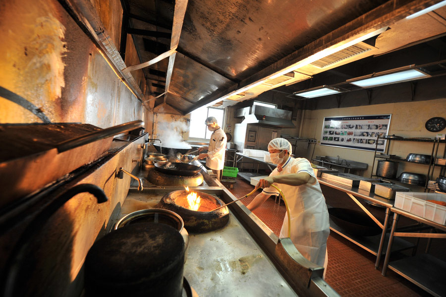 Cocineros de China Southern Airlines terminan preparado diferentes platos al estilo de Haikou, provincia de Hainan, el 22 de marzo de 2017. [Foto / VCG]