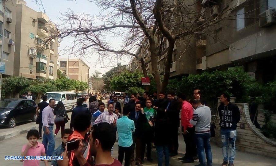 EL CAIRO, marzo 24, 2017 (Xinhua) -- Personas se reúnen cerca del sitio donde se registró una explosión en El Cairo, Egipto, el 24 de marzo de 2017. Una persona murió y cuatro resultaron heridas el viernes cuando un dispositivo explosivo hizo estallar en un jardín del distrito de Maadi, al sureste de la capital egipcia, El Cairo, según informó el diario oficial Al Ahram en su sitio web. (Xinhua/Ahmed Gomaa)