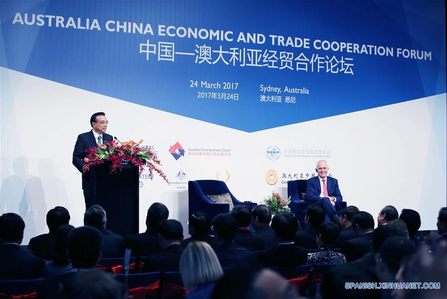 SIDNEY, 24 mar (Xinhua) -- El primer ministro de China, Li Keqiang, de visita en Australia, asistió hoy viernes en Sidney al Foro de Cooperación Económica y Comercial China-Australia con su homólogo australiano, Malcolm Turnbull, y acordaron promover la facilitación y liberalización del comercio.