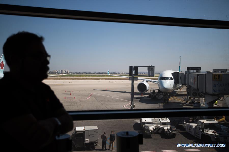 TEL AVIV, marzo 26, 2017 (Xinhua) -- Un viajero observa un avión de pasajeros Airbus A350-900 en el Aeropuerto Internacional Ben Gurion en Tel Aviv, Israel, el 26 de marzo de 2017. Cathay Pacific lanzó el domingo una nueva ruta de vuelo que une a Hong Kong con Tel Aviv. La aerolínea operará 4 vuelos semanales en esta ruta, con un vuelo adicional cada semana durante la temporada alta. (Xinhua/Guo Yu)
