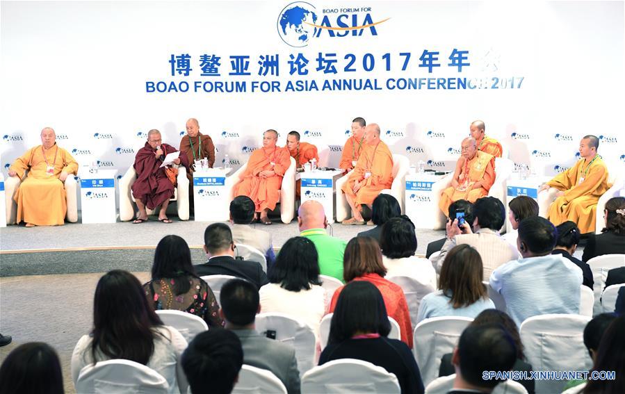 BOAO, marzo 26, 2017 (Xinhua) -- Un diálogo con líderes religiosos se lleva a cabo durante la Conferencia Anual del Foro de Boao para Asia (FBA) 2017, en Boao, en la provincia de Hainan, en el sur de China, el 26 de marzo de 2017. (Xinhua/Zhao Yingquan)