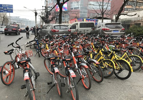 El negocio de alquiler de bicicletas compartidas se ha popularizado en China. Algunos lo han llamado la "competencia del arco iris" debido al colorido de las bicicletas. Las amarillas son Ofo, las azules son Bluegogo y las anaranjadasson Mobike.