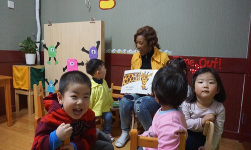 Noah con su maestro y compa?eros de clase en la guardería. Foto: Zhang Xinyuan / GT
