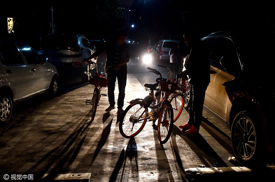 Entonces Huzi decidió unirse a un equipo de “caza-bicicletas”. Ahora este trabajo de voluntario se ha convertido en una parte importante de su vida. Sale a cazar bicicletas al menos tres noches a la semana, cada vez dedicando unas dos horas. [Foto / VCG]
