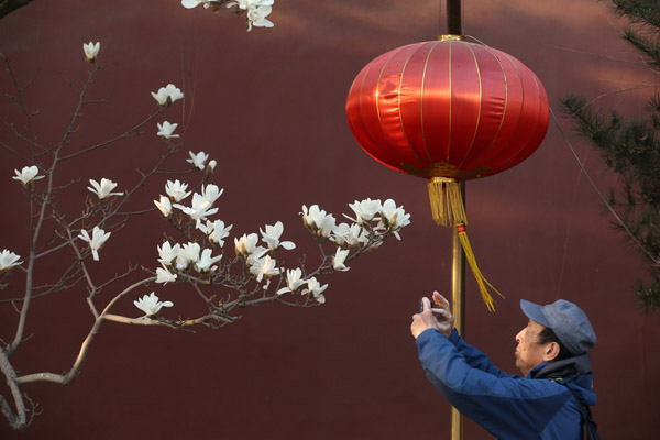 Magnolias florecidas en la avenida Chang'an de Beijing, 10 de marzo del 2017. [Foto: VCG]