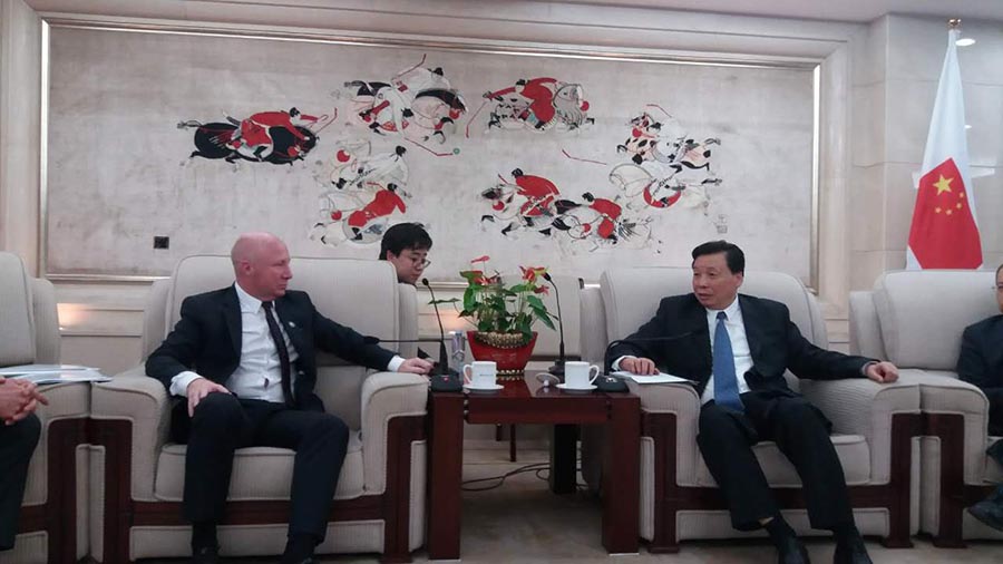 Yang Shu'an, subdirector y secretario del Partido de la Administración Estatal de Deportes, se entrevistó con el secretario de Deportes Mac Allister para definir los detalles del mecanismo de intercambio de entrenadores de fútbol entre ambos países.