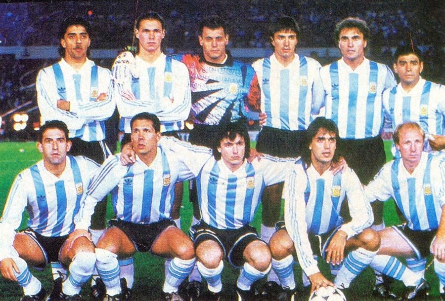 La selección nacional de Argentina en las calificaciones de la Copa Mundial de 1994. Mac Allister, apodado "El Colorado", jugaba al lado de los estrellas como Diego Maradona, Gabriel Batistuta, Diego Simeone, etc.. Fotografía de archivo por cortesía de la embajada argentina cuyo uso fue autorizado por el Sr.Mac Allister.