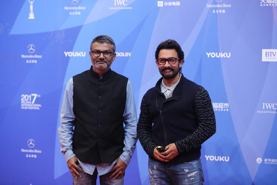 Miembros del reparto de Dangal durante la apertura del Festival Internacional de Cine de Beijing el domingo. El evento durará hasta el 23 de abril de 2017. [Foto por Jiang Dong / China Daily]
