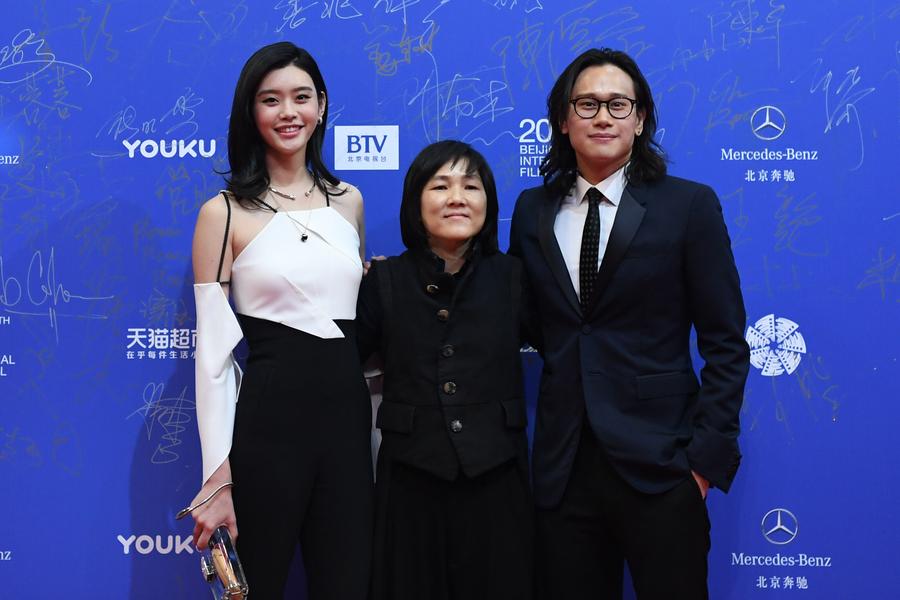 Miembros del reparto de This Is Not What I Expected durante la apertura del Festival Internacional de Cine de Beijing el domingo. El evento durará hasta el 23 de abril de 2017. [Foto por Jiang Dong / China Daily]