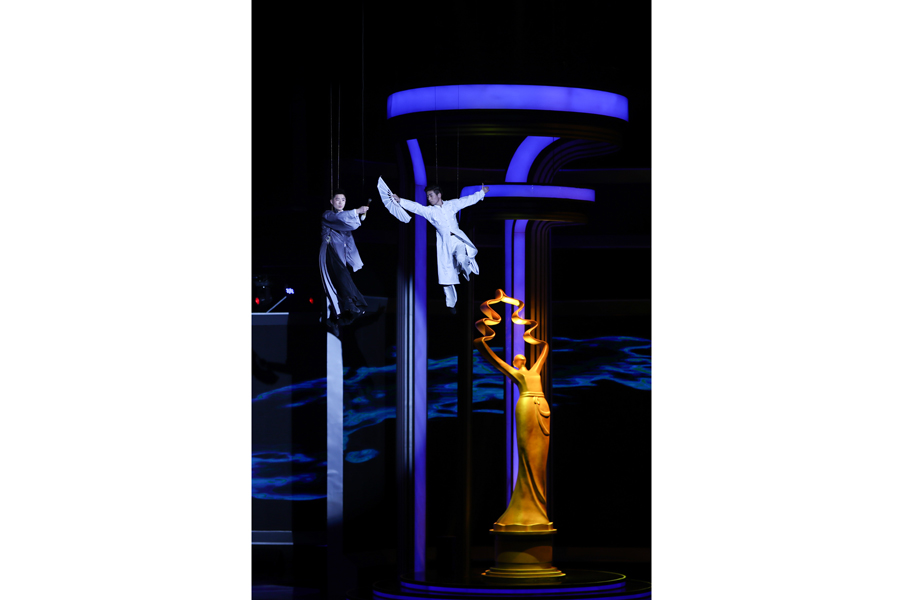Varios artistas actúan durante la ceremonia de apertura del Festival Internacional de Cine de Beijing el domingo. El evento durará hasta el 23 de abril de 2017. [Foto por Jiang Dong / China Daily]