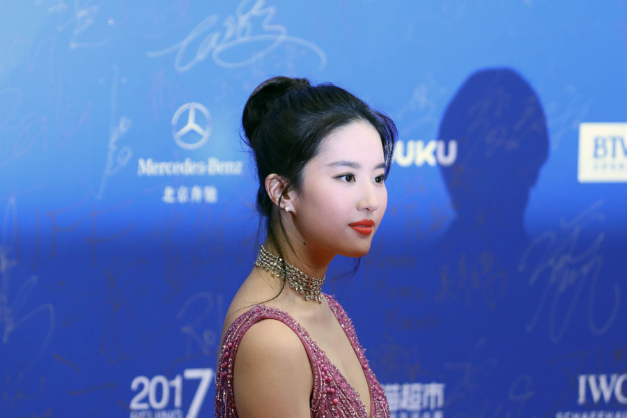 Liu Yifei posa en la alfombra roja durante la apertura del Festival Internacional de Cine de Beijing el domingo. El evento durará hasta el 23 de abril de 2017. [Foto por Jiang Dong / China Daily]