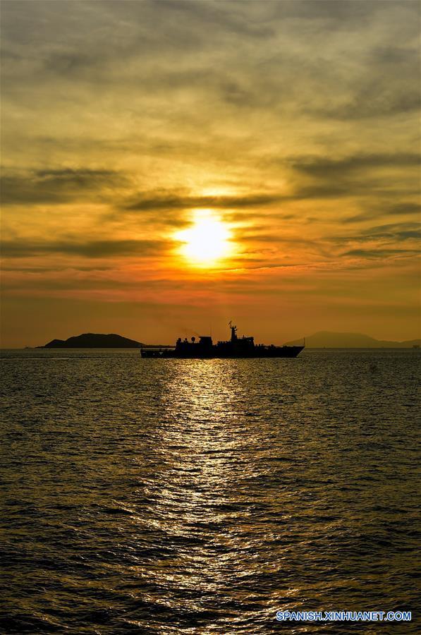HAINAN, abril 17, 2017 (Xinhua) -- Un buque policial sale de Sanya, en la provincia de Hainan, en el sur de China, el 17 de abril de 2017. Dos buques de la policía marítima china salieron el lunes de Sanya para una inspección conjunta de las pesquerías entre China y Vietnam. La inspección, en el Golfo de Beibu, involucra a dos barcos de la policía de cada país, y se llevará a cabo durante tres días, terminando el jueves. Las inspecciones conjuntas comenzaron en 2006 como un evento anual, que aumentó a dos veces al a?o desde 2016. (Xinhua/Mao Siqian)