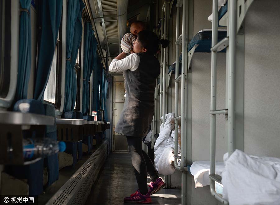 Una mujer abraza a su hijo en un vagón del tren, el 14 de abril de 2017.
