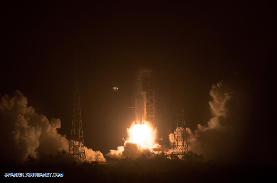 HAINAN, abril 20, 2017 (Xinhua) -- La primera nave espacial de carga de China, Tianzhou-1, encima de un cohete portador Long March-7 Y2, despega del Centro de Lanzamiento Espacial de Wenchang, en la provincia de Hainan, en el sur de China, el 20 de abril de 2017. China lanzó al espacio la noche del jueves su primera nave de carga, la Tianzhou-1, un paso crucial en el camino del país asiático hacia la construcción de su primera estación espacial, prevista aproximadamente para el 2022. (Xinhua/Ju Zhenhua)