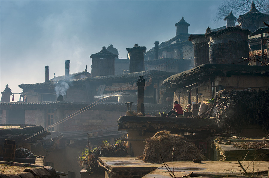 La imagen ofrece un paisaje tranquilo de un antiguo pueblo en el condado Luxi de la provincia de Yunnan. La foto fue realizada por Feng Longhua en enero de 2015. [Foto / photoint.net]